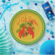 Prato De Papel Pimentos vermelhos em papel no fundo da mostarda