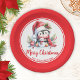 Estes pratos de papel de Natal vermelho e branco festivos com um pinguim bonito, um pequeno boneco de neve, e verde festivo apresentam um ditado de Natal Feliz e um modelo para o nome da sua família para personalizá-los para a festa de Natal. O design é otimizado para Placas de Papel Redondas, de modo que, para outras formas e tamanhos, talvez seja necessário ajustar o layout.