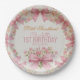 Prato De Papel Pink Bow Coquette Floral 1st Birthday Personalized
