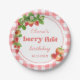 Prato De Papel Pink Gingham Strawberry Aniversário