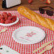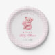 Prato De Papel Pink Gingham Teddy Bear Neutral Baby Shower