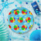 Placas de natação de verão com uma bola de praia em uma piscina legal. Adicionar texto para personalizar.
