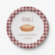 Reúna seu aniversário de torta com esses pratos personalizados de gingham vermelho.