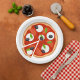 Uma pizza mozzarella de cheio deliciosa. Este design parece realmente eficaz nestas placas de papel