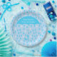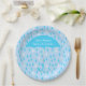 Placa de papel de chá de fraldas personalizada azul, com gráficos de um padrão de chuva azul branco e azul turquesa e um grande guarda-chuva azul azul turquesa. Personalize o texto branco para ler o que você quer. Os convites correspondentes e outros suprimentos de terceiros estão disponíveis.