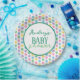 Chá de fraldas de polkadots multicoloridos ou placas de papel de aniversário, mude o texto para qualquer coisa que você quiser quando solicitar.