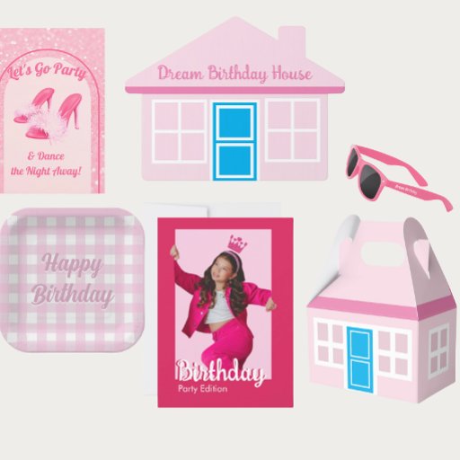 Placa de papel para aniversário de tema rosa. A mensagem de aniversário personalizada pode ser adicionada ao prato.