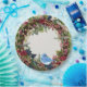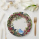 Partido Bird & Wreath Plate França decor com um pássaro azul descansando - cores de jardim de verde, azul, rosa e vermelho quente. As designs de pássaros e coroa também estão disponíveis em triviais, portas copos e guardanapos. Personalize cada produto conforme desejar.