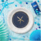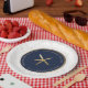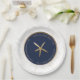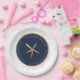 Esta elegante e moderna placa de chá de fraldas apresenta uma ilustração de estrelas-do-mar e dólares de areia sobre um fundo branco. No primeiro plano, há um círculo azul marinho com estrelas douradas (folha simulada) no centro. O texto à volta da borda pode ser personalizado de acordo com o seu gosto. Uma maneira bela e elegante de complementar uma praia ou um chá temático náutico.