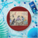 Aquarela original de Mahjong Cães em uma placa de papel vermelha profunda