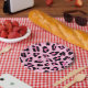 Placa de papel de impressão de festas de pele de chita rosa-branca
