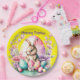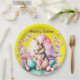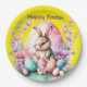 Placa de Páscoa amarela alegre com um coelho e ovos para o seu Feriado