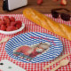 Prato De Papel Placa de papel de pôy azul e vermelho