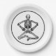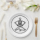 Placa de papel de festas mostrada em um impressão de esqueleto de Halloween.