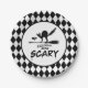 A placa de papel é mostrada com um impressão de harlequin de Halloween. Preto e branco colorido Personalize este item ou comprar como está. Imagem do stock