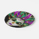 Esta placa de papel é mostrada com um impressão festivo de máscara de carnaval Mardi Gras. Preto colorido Também oferecemos um guardanapo de papel correspondente. Personalize este item ou comprar como está.