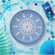 Borda azul e margarida branca com centro cor-de-rosa em um fundo azul suave A cor do fundo pode ser alterada para um aspecto diferente
