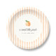 Chapas de papel para chá de fraldas, de tema "doce", bonitinho, com fundo listrado de pêssego pastel e um roteiro de safra.