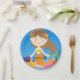 As placas de papel personalizadas do aniversário triguenho da sereia caracterizam uma sereia bonito com o cabelo marrom decorado com estrela do mar colorida, a cauda alaranjada da sereia, a estrela do mar, a erva daninha do mar, o oceano azul, e uma área que você pode personalizar com o nome e idade da menina do aniversário!