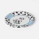 Nossa placa do chá de fraldas do vaqueiro da vaca tem uma vaca do bebê com viga azul a fita impressa sob o círculo branco. O impressão da vaca cobre a borda exterior e vai com design do impressão da vaca do vaqueiro de zazzle.com/mybabybundles.