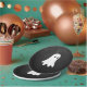 Ghosty do Ghost em um cemitério diz, "Boo! Hora da comida!" Perfeito para a festa de Halloween!