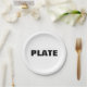Placa perfeita para sua festa de moda genérica. Tudo emociona sem batatas fritas. Apenas a palavra PLATE em texto preto.