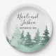 pratos de casamento da floresta rustic watercolor com nome de casal e data de casamento.