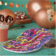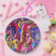 Enlouquecer com estas placas de design de "Febre Selvagem". Essas belas coloridas e ousadas são na moda, divertidas e únicas e o padrão é criado de uma pintura de abstrato original. Expresse seu estilo pessoal em casa, com amigos, aniversários, eventos e muito mais com essas placas de papel modernas hoje!