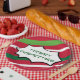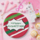 Sirva um banquete neste feriado em alguns pratos divertidos. Não é preciso limpar depois, mas ainda ter uma mesa decorativa ao mesmo tempo. As listras vermelhas, verdes e brancas são o fundo deste prato com uma bolha de palavras engraçadas e a mensagem Feliz dentro de Natal. Divirta-se, divertida e criativa.
