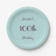 O fundo azul de ovo de um pino decora esta única e divertida placa de papel da festa. O texto é roxo. Embora o padrão diga "100º aniversário", você pode facilmente alterar o texto para nome, número de anos e evento. Muito feminino e feminino! O guardanapo de papel correspondente é o produto zazzle 256045343978085647. Todos os direitos reservados © 2015 Alan & Marcia Socolik.