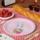 Esta placa de papel é mostrada num coelho da Páscoa festiva com impressão de ovos de cor rosa. Tamanho 9" Personalize este item ou comprar como está.