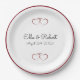 Dois corações monogramaram pratos de papel para seu casamento ou recepção de aniversário. Disponível em diferentes formas e tamanhos. Fornecimentos correspondentes disponíveis.