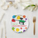 Um design da placa de papel de harmonização para aquele caçoa a festa de aniversário do paintball! Tem a versão dos miúdos da arma do paintball com splats coloridos da pintura para o fundo. O texto amusing lê "carrega acima!" qual é um jogo de palavras da chalaça em carregar acima a arma do paintball com as pelotas do paintball com carregamento acima da placa de papel com a comida!