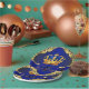 Placas de papel príncipe chá de fraldas com bela coroa azul e dourada e azul é uma faixa de príncipe em um rico fundo azul e rodovalho. Você pode mover a coroa e pode excluir a faixa.