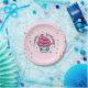 Placas de papel bonitos do partido com um cupcake cor-de-rosa do aniversário.