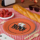 Placa de papel de festa mostrada em laranja e com a palavra "boo" e um fantasma fofo. Personalize este item ou comprar como está.