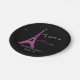 Placas de papel da festa de aniversário temático Glam do doce dezesseis de Paris, feitas no preto, com gráficos de um brilho cor-de-rosa que olha a torre Eiffel e as estrelas brancas do twinkling. Personalize o texto branco e cor-de-rosa feito sob encomenda para ler o que você quer. Os guardanapo e os convites de harmonização estão disponíveis.