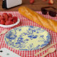Placas de papel floral em francês - as cores são azul e branco creme.