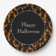Esta placa de papel é mostrada em um design de impressão de gato preto assustador de Halloween. Também oferecemos um guardanapo de papel equivalente. Personalize este item ou comprar como está.