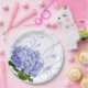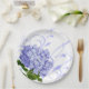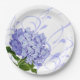 Chapas de papel de festas mostradas no tamanho branco jante com um impressão de arte de um adorável solteiro azul de hydrangea design. Oferecemos um guardanapo para combinar com este prato de papel. Personalize este item ou comprar como está. Imagem do stock