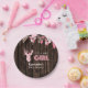 Este é um excelente adicional para a sua festa. As placas de papel personalizadas adicionam um toque especial ao seu chá de fraldas. Está sobre um fundo texturizado de madeira escura com um veado de xadrez azul claro com galhadas e diz "É uma Garota". Personalize com um nome da Mãe a Ser. Você pode personalizar o estilo, a cor e o estilo da fonte.
