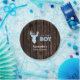 Este é um excelente adicional para a sua festa. As placas de papel personalizadas adicionam um toque especial ao seu chá de fraldas. Está sobre um fundo texturizado de madeira escura com um veado de xadrez azul claro com chifres e diz "É um menino". Personalize com um nome da Mãe a Ser. Você pode personalizar o estilo, a cor e o estilo da fonte.
