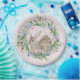 Excelente para comemoração temática, aniversários, chás de fraldas, Páscoa etc. Xícaras de papel disponíveis. Um véu de confete azul mostra atrás da borboleta e do design floral. Cor de fundo personalizável.