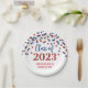 Classe de festa de formatura personalizável de placas de 2023 em padrão de confete azul e vermelho glamouroso e texto elegante com letra manual.
