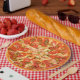 Placas de papel para pizza de pepperoni e queijo