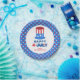 Chapas de papel personalizadas com um fundo de estrela patriótico junto com o texto "Feliz 4 de julho" Adicione o seu nome de família à placa para personalizá-lo.