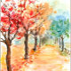 Autumn Road é uma aquarela original de Annie Mason. As reuniões de outono ou os eventos de Ação de Graças combinarão bem com a estação.