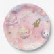 Prato De Papel Planetas e estrelas de aniversário rosa