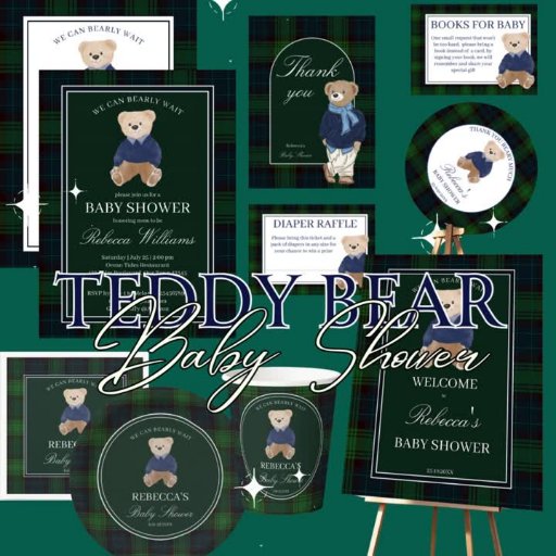 Teddy bear green plaid baby showerCriado por Ieva Jenciute