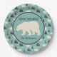 Servir cozinhar de férias com estilo com estas placas de papel de Natal personalizadas. Estas placas festivas apresentam um legal padrão invernal de ursos polares de estilo desenhado à mão e árvores azuis-marinhos escuras e verdes sobre fundo verde-claro. No centro das placas está uma ilustração de urso polar e sua própria mensagem e nome em divertido marinho azul.